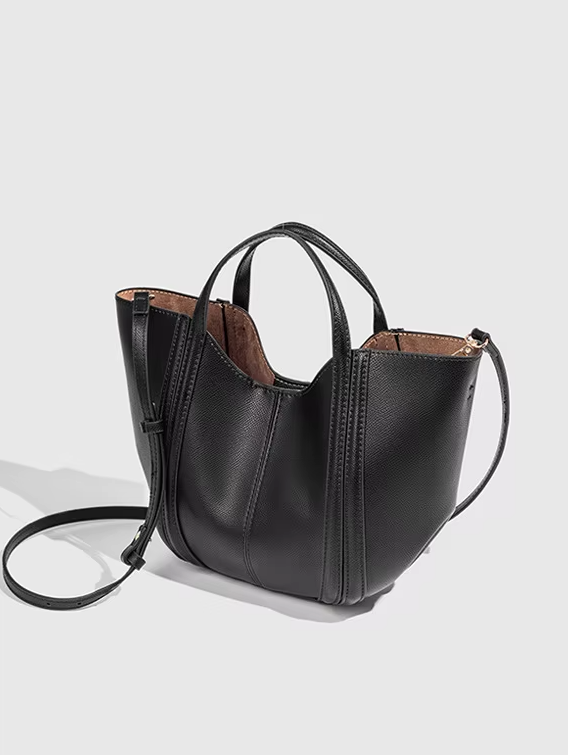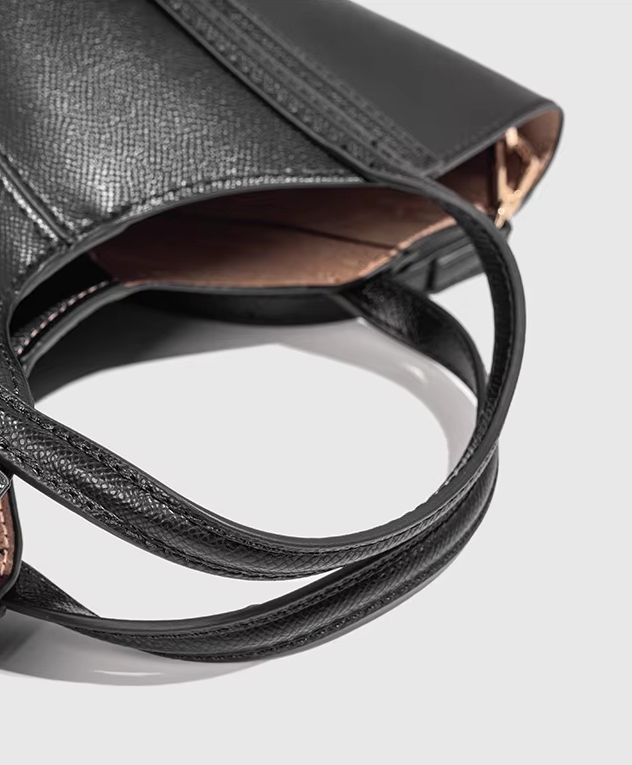 Este bolso de cuero vegano combina líneas modernas y un acabado sofisticado que eleva cualquier look, desde el más casual hasta el más urbano. Su diseño estructurado transmite estilo, practicidad y conciencia sostenible en una sola pieza.