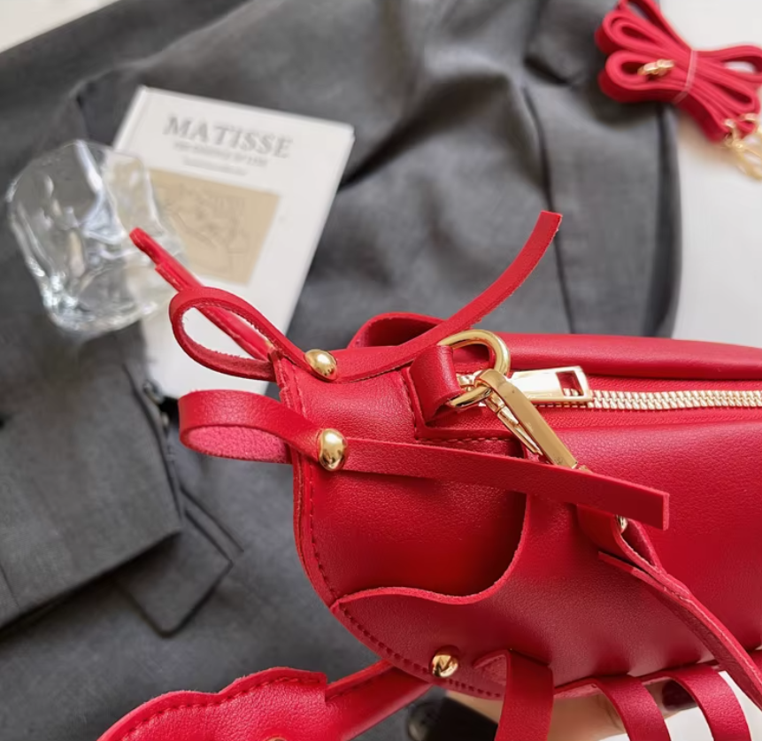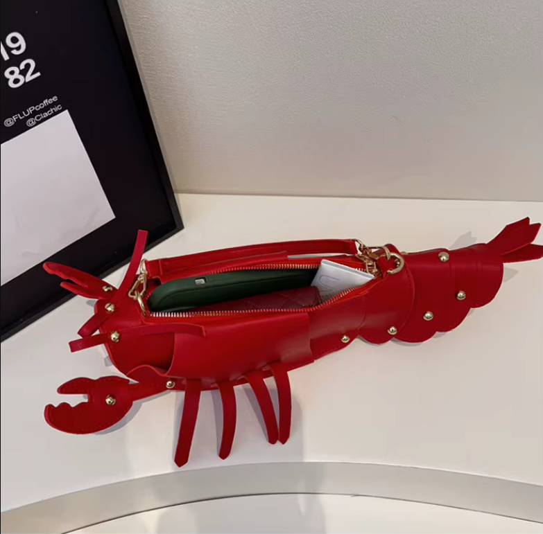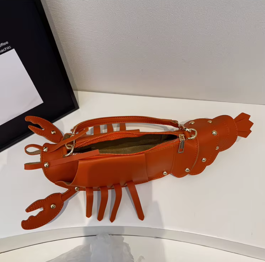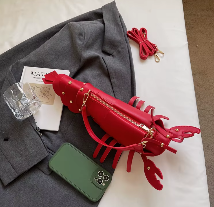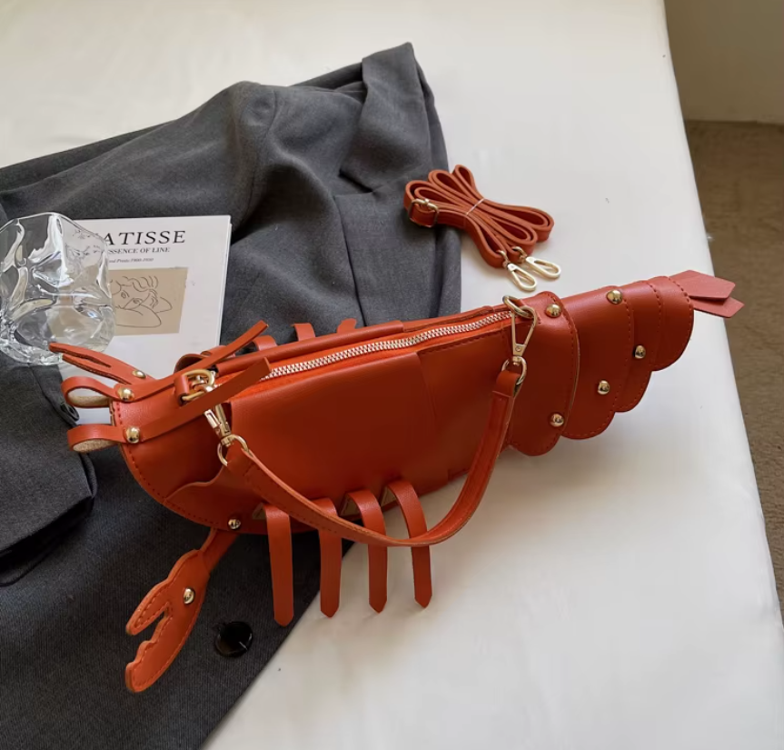Inspirado en el diseño de la marca LV, este bolso con forma de langosta es perfecto para quienes aman los accesorios creativos, divertidos y fuera de lo convencional.