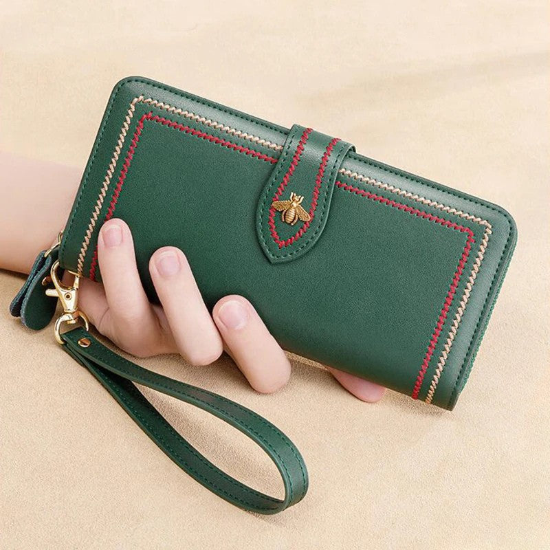 Eleva tu estilo diario con esta cartera larga de mujer en cuero genuino, un accesorio elegante y funcional diseñado para mujeres que valoran la seguridad, la organización y la moda.