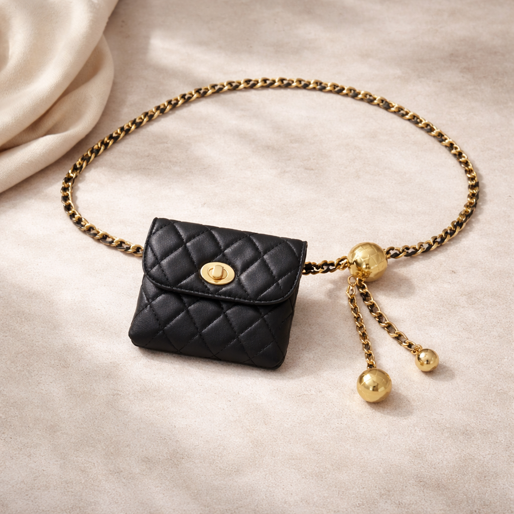 Cinturón con Bolsita en PU y Cadena Metálica – Elegancia Funcional