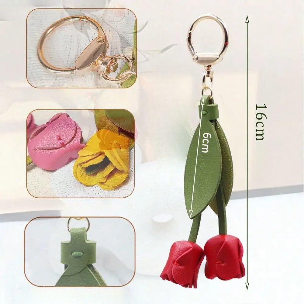 Dale un toque sofisticado y femenino a tu bolso con este elegante llavero colgante en forma de tulipán, diseñado para destacar con delicadeza y estilo en cualquier ocasión.